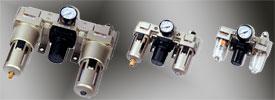 Блоки подготовки воздуха из трех элементов (фильтр-влагоотделитель + регулятор давления + маслораспылитель)